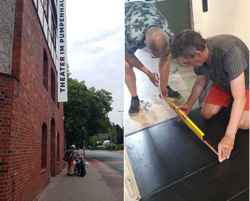 Der Zugang zum Theaterraum ist barrierefrei. Es gibt eine Rollstuhlgeeignete Toilette. Für ein historisches Gebäude ist die Teilhabe schon gut gegeben. Eine Außenklingel in Rollstuhlhöhe haben wir angeregt.